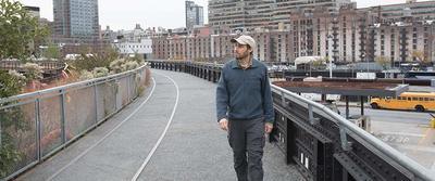 The best scenes in the film come from Green’s interactions with people he meets on his route, from friendly, inquisitive passersby to walkers on similar quests who wish to join him for a day. One such walker, a Jamaican man named Garnette Cadogan, is a New York City transplant like native Virginian Green. Cadogan provides an example of the film’s willingness not to blunt some of the sharper edges in its story. He talks about his “pantomime” of a costume, that is, what he wears and how he presents himself so that he appears “non-threatening” to people because he’s Black. He carries a book, wears glasses and avoids hoodies and other “ethnic” wear. Indeed, Cadogan looks like a Buppie when we see him, a striking comparison to some of the Oscar Madison-style slumming attire Green has on at different points in the film.