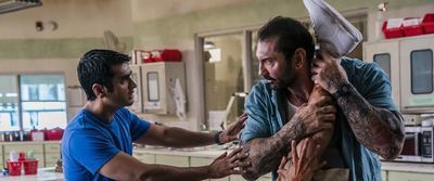So how does the movie earn the two stars I’m giving it? Kumail Nanjiani and, yes, Dave Bautista. Nanjiani is a near-genius of unprepossessing dryness even when the punchlines he’s obliged to deliver aren’t worthy of his expert handling. And Bautista, underneath his lumbering mass, is starting to get a little Lee Van Cleef thing going, performance wise. I hope he hones it in better movies. Watching these two go through the paces of this dreck is dispiriting. I kept thinking, Nanjiani knows the writers from “Silicon Valley,” and he’s married to Emily Gordon, who co-wrote “The Big Sick” with him; surely he could have tempted them to come on board and punch up a few jokes? But even if he had, it’s not clear they could have scrubbed off the lazy cynicism that pulses through all the nodes of this project.